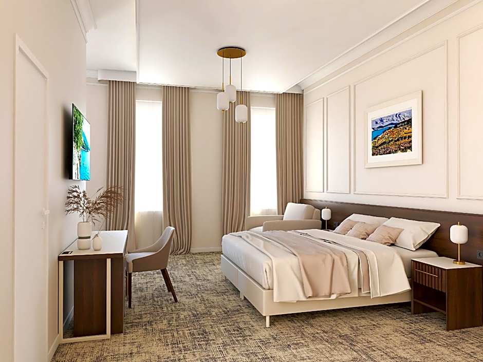 This air-conditioned double room features a smart LCD TV, free Wi-Fi, a mini-bar, a safe, a telephone, adjustable lighting, a work desk with a chair, and a private bathroom with a shower, toiletries, and a hairdryer.